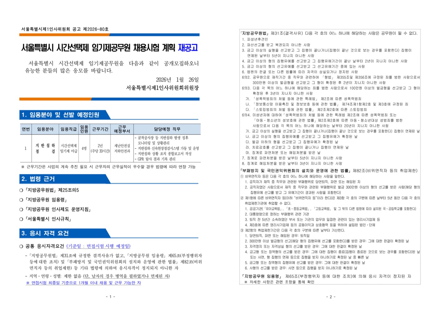 [홍보] 서울특별시 시간선택제 임기제공무원 채용시험 계획 재공고