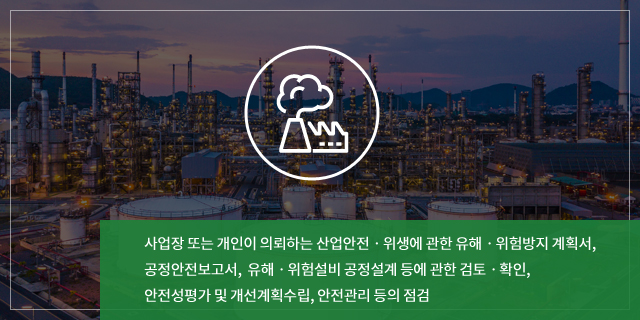 - 산업재해예방을 위한 기계안전,전기안전,화공안전,건설안전,산업위생분야의 기술진단