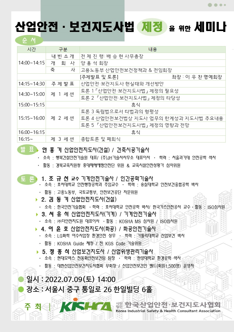 토론 2 산업안전보건지도사법 제정의 타당성을 주제로 김동기 지도사님께서 15분간 발표