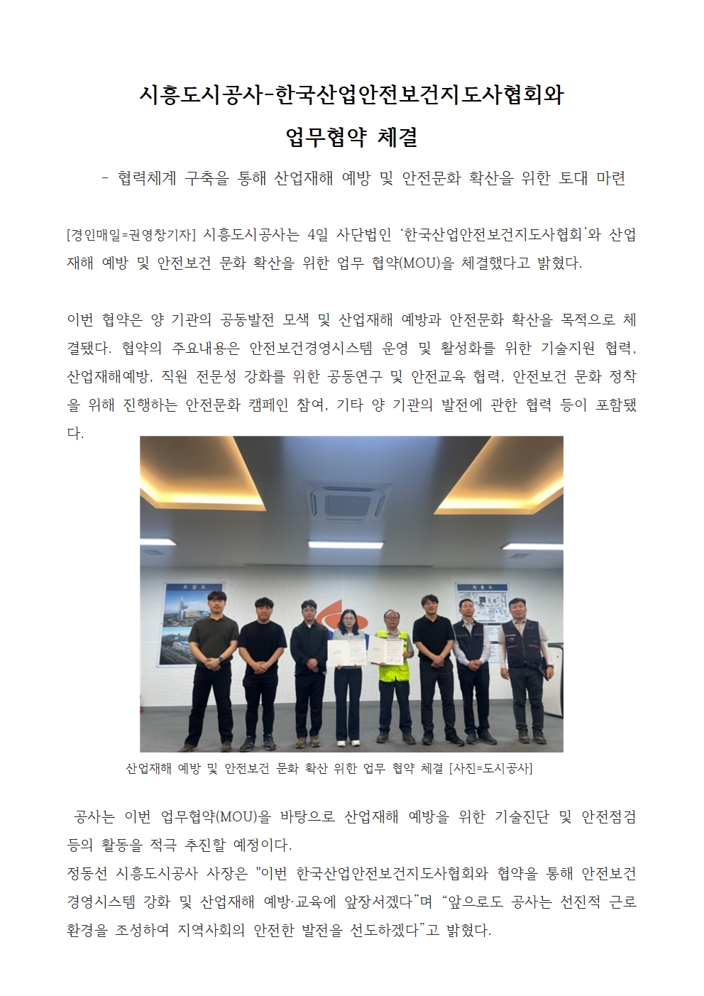 '한국산업안전보건지도사협회'와 '시흥도시공사' 업무협약 체결