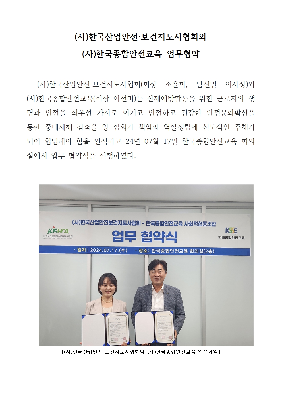 (사)한국산업안전·보건지도사협회와 (사)한국...