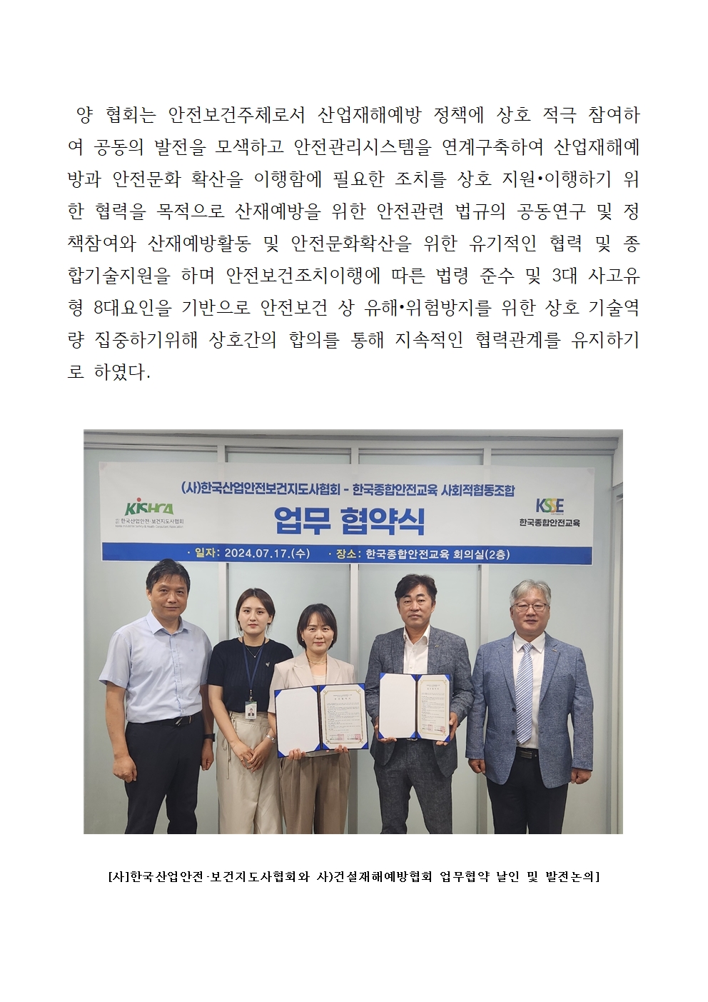 (사)건설재해예방협회와 안전문화확산 및 산재...