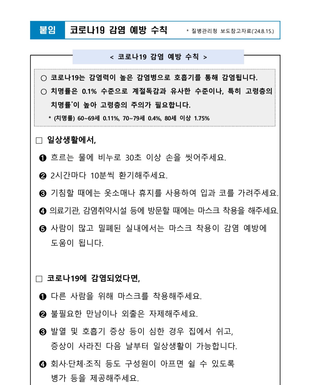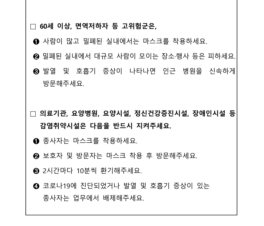 코로나19 감염 예방수칙 안내