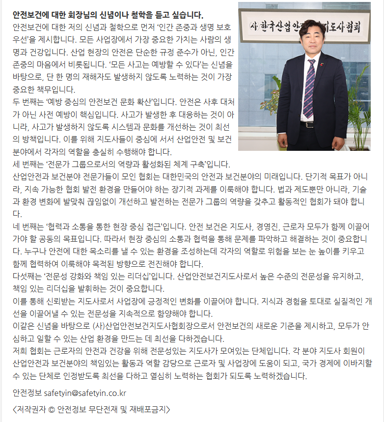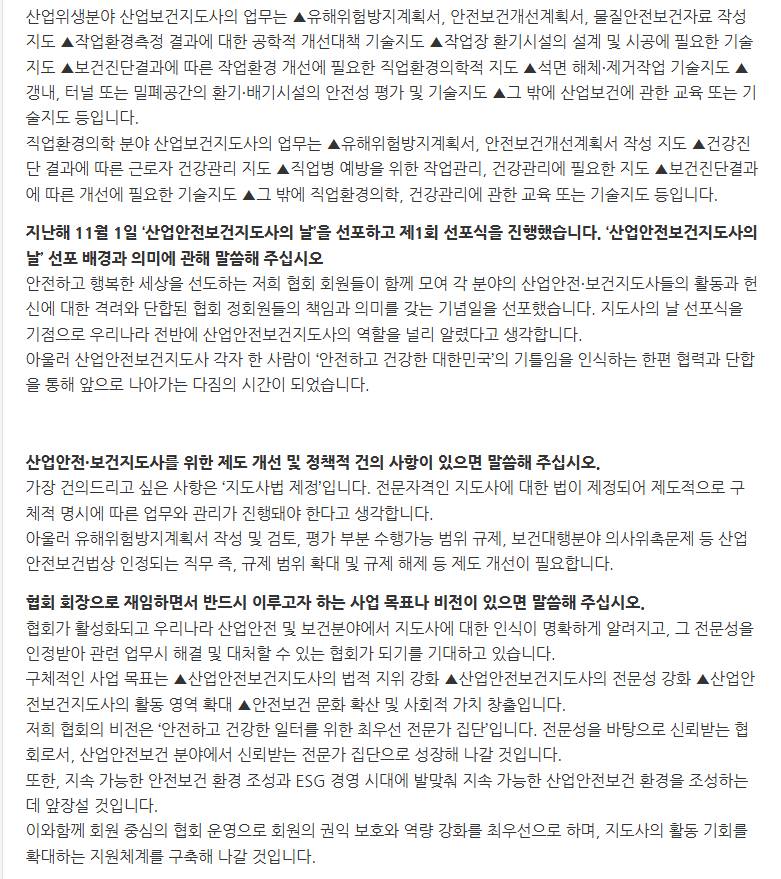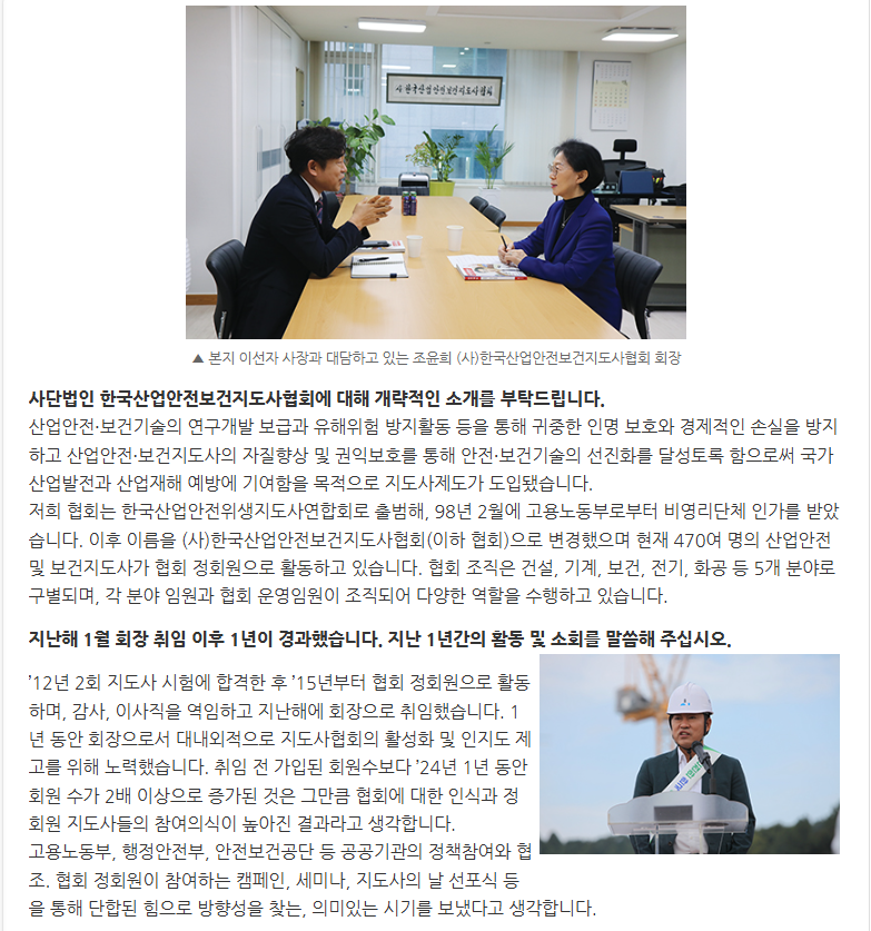 안전정보 모바일 사이트, [초대석]조윤희 (사)한국산업안전보건지도사협회 회장