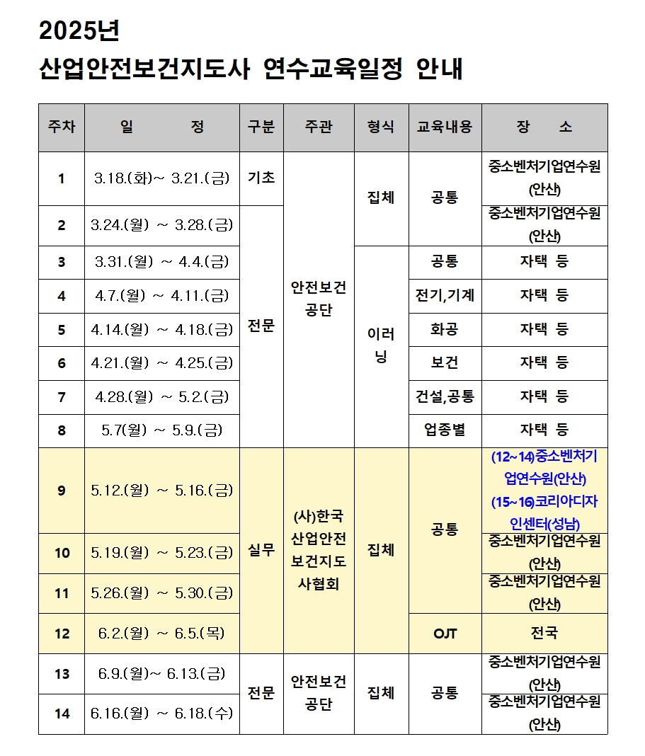[2025년 산업안전보건지도사 연수교육 일정안내]