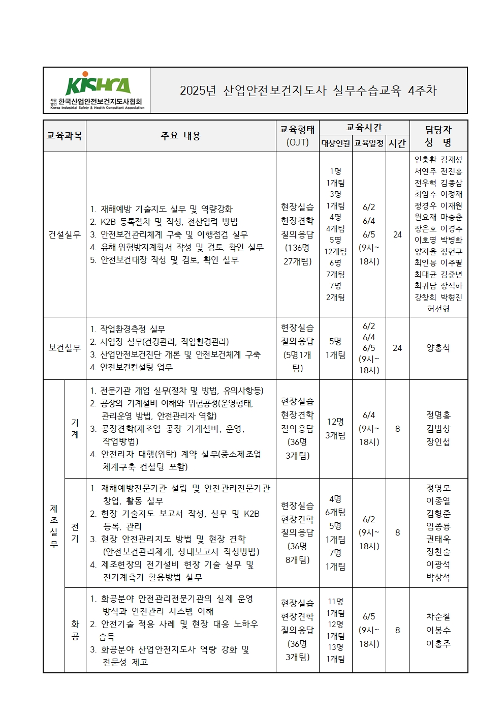 [2025년 산업안전지도사 연수실무수습교육 일정 및 장소 안내]