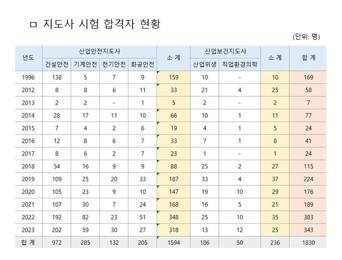 [산업안전보건지도사 합격자 현황]