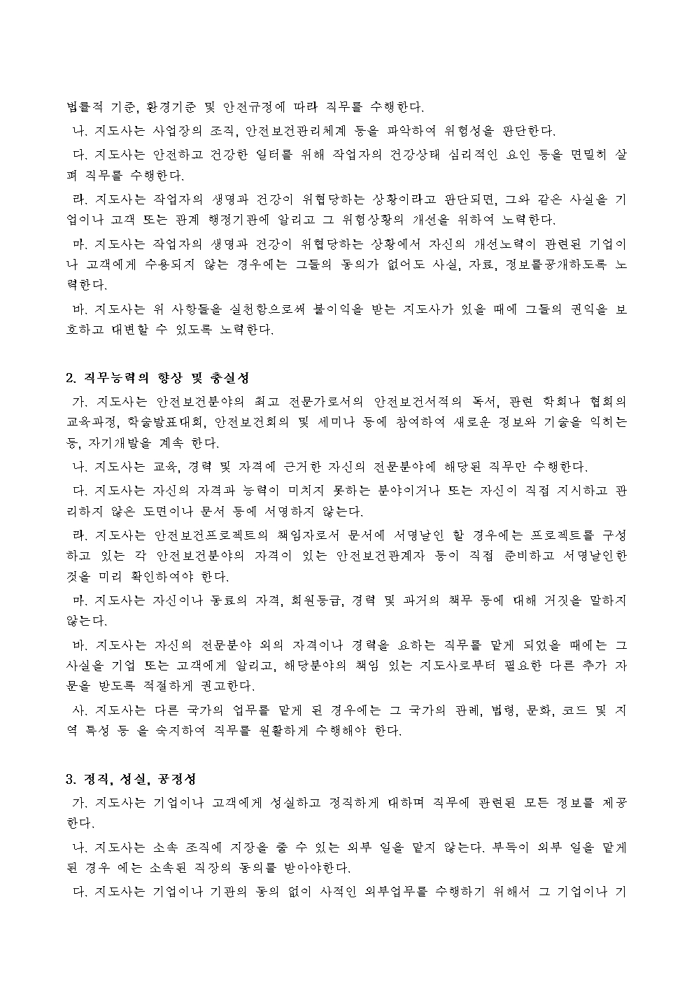 (사)한국산업안전보건지도사협회 윤리규정