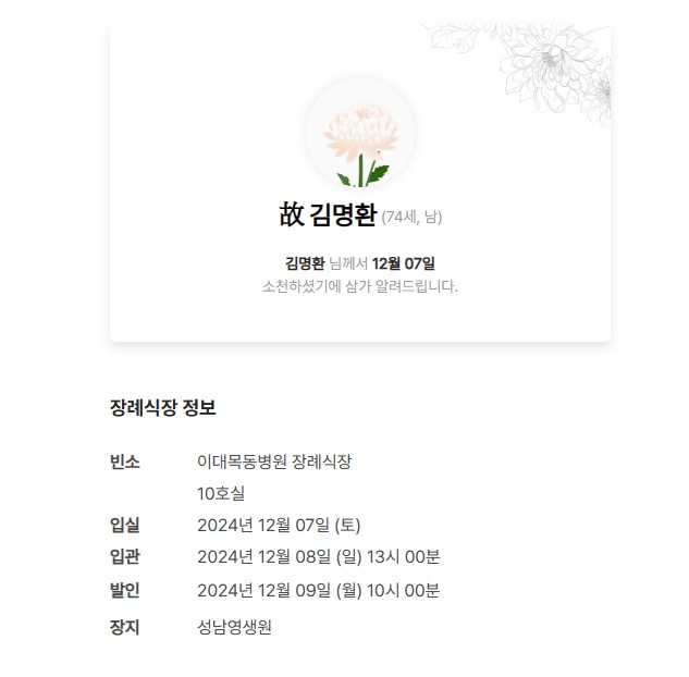 [부고] 건설분야 김명환지도사님께서 소천하셨기에 삼가 알려드립니다.