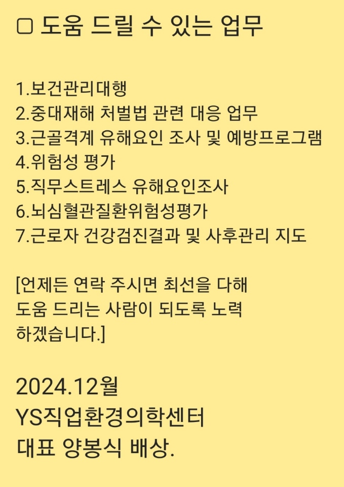 [개업] YS직업환경의학센터 양봉식(산업보건)