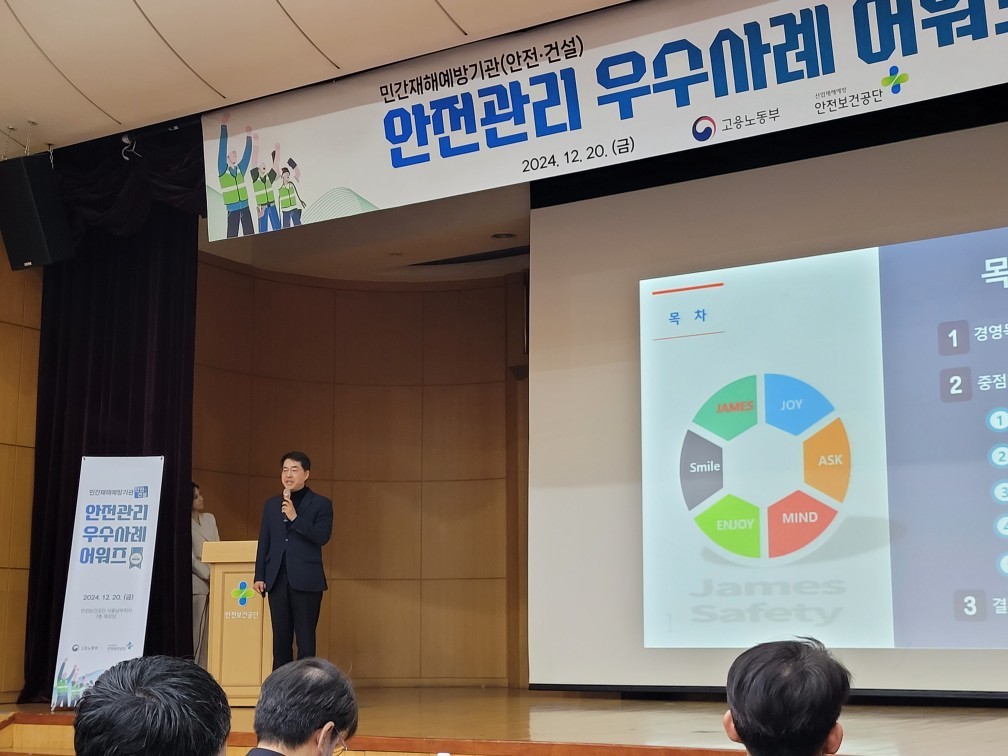 민긴재해예방기관 140여개 기관이 어워즈에 신청하여 수상한 6개기관 중 1인지도사기관은 제임스안전지도사종합사무소가