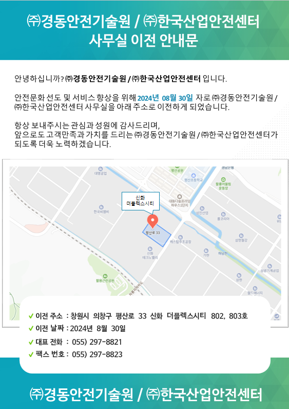 [사무실 이전 안내] 김태현 지도사(기계안전)